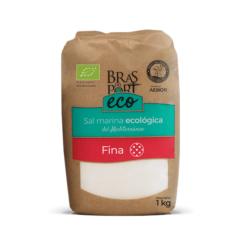 Sal marina fina ecológica Bras del Port ECO certificada por el Comité de Agricultura Ecológica de la Comunitat Valenciana (CAECV) en base al Nuevo Reglamento (UE) 2018/848.
